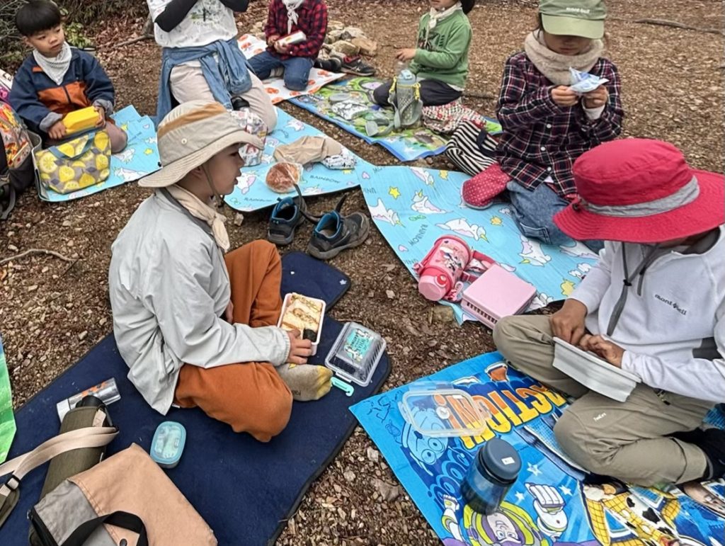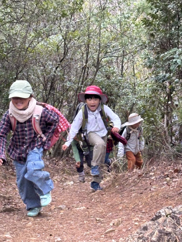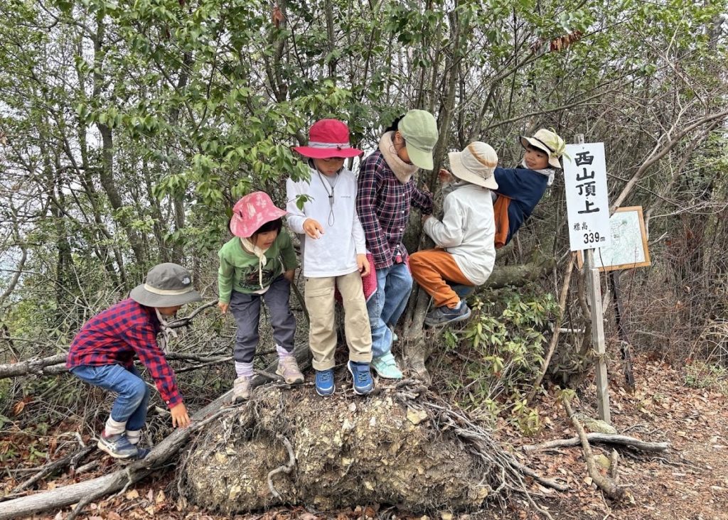 途中アップダウンの坂もありましたが、みんな元気に2つ目の山に到着!いつものようちえんみたいにけんかをしつつも、山頂では、みんな一緒に元気に遊びまわる。