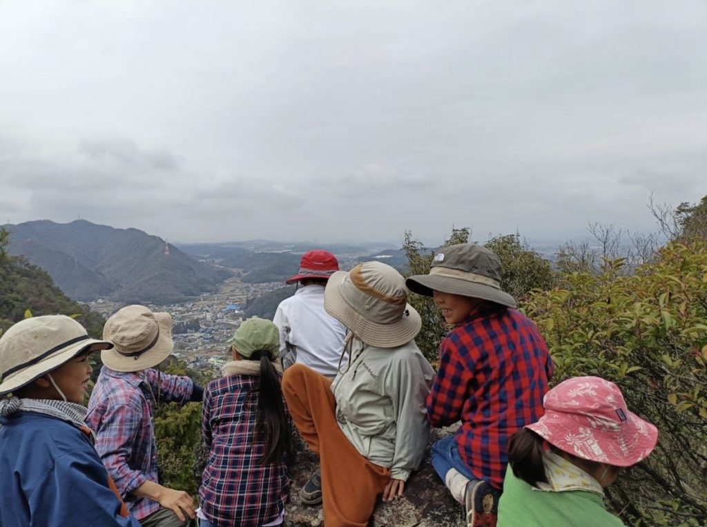 「後ろの山の方、見ないで!(見ると絶望感が増すから笑)」と、いつも元気な子どもたちからも、さすがにそんな声も上がり始めました。なので、一つ目の山頂に着いた途端、「疲れたー!ご飯食べるー!」の声。